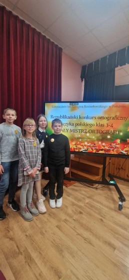 W Gimnazjum im. Longina Komołowskiego w Połukniu odbył się Republikański Konkurs Ortograficzny Języka Polskiego dla klas 3–4 „Mały Mistrz Ortografii”. W wydarzeniu wzięły udział cztery osoby – dwie z klasy trzeciej oraz dwie z klasy czwartej. Uczniów klasy 3 do konkursu przygotowała pani Renata Tomaszewicz, a uczniów klasy 4 – pani Renata Romejko. Konkurs składał się z dyktand i zadań sprawdzających znajomość zasad pisowni. Uczestnicy wykazali się dużą wiedzą i starannością. Pierwsze miejsce w kategorii klas trzecich zdobyła Elżbieta Bogdanowicz, uczennica klasy 3. W kategorii klas czwartych pierwsze miejsce zajął Daniel Gostew, a drugie – Daniel Jancewicz, obaj z klasy 4. Atmosfera podczas konkursu była pełna skupienia i pozytywnej rywalizacji. Gratulujemy wszystkim uczestnikom.